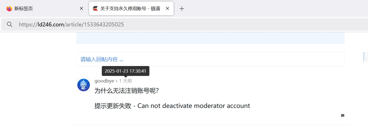 在体用账号帖子留言后,账号被封禁,而不是被停用。