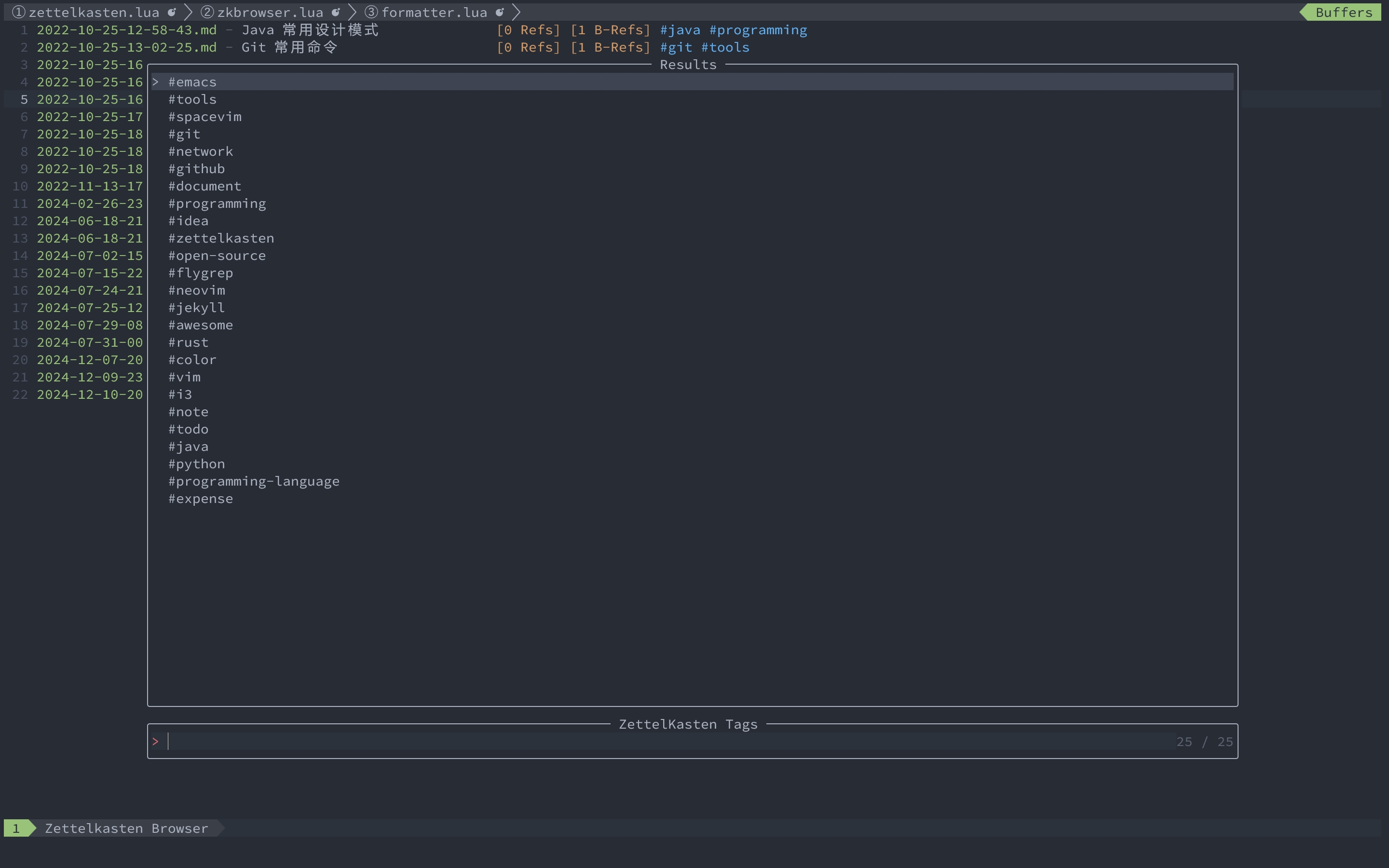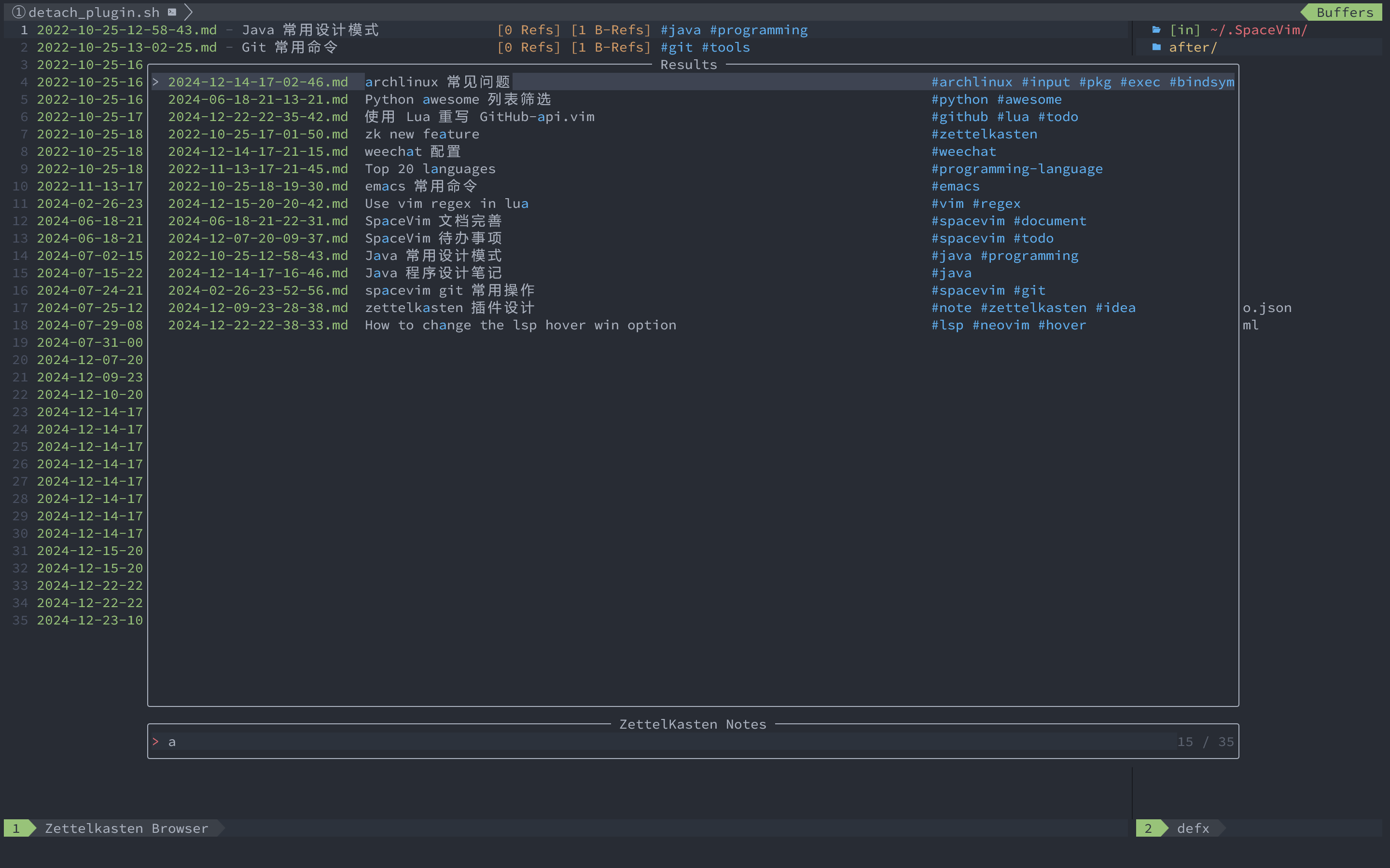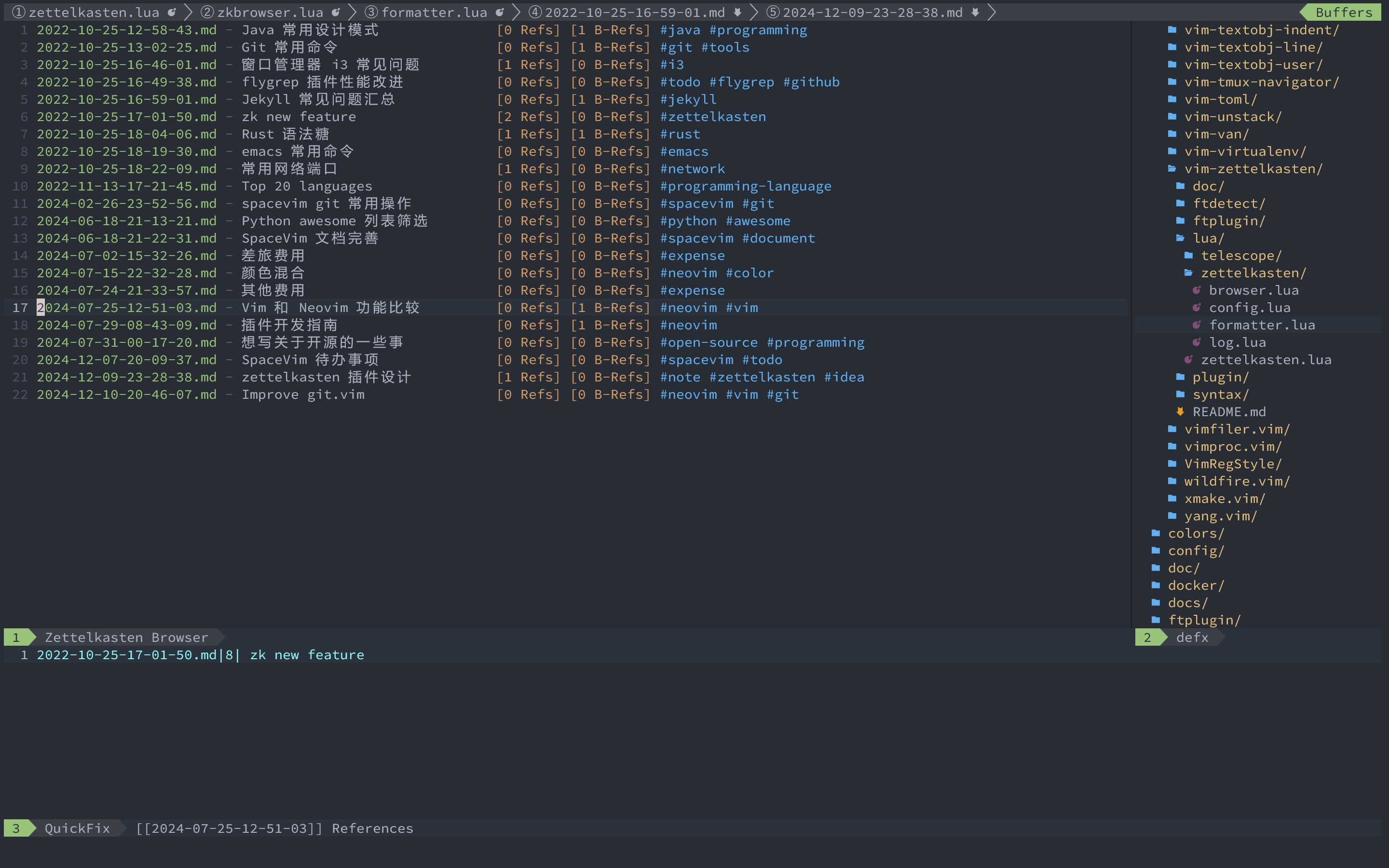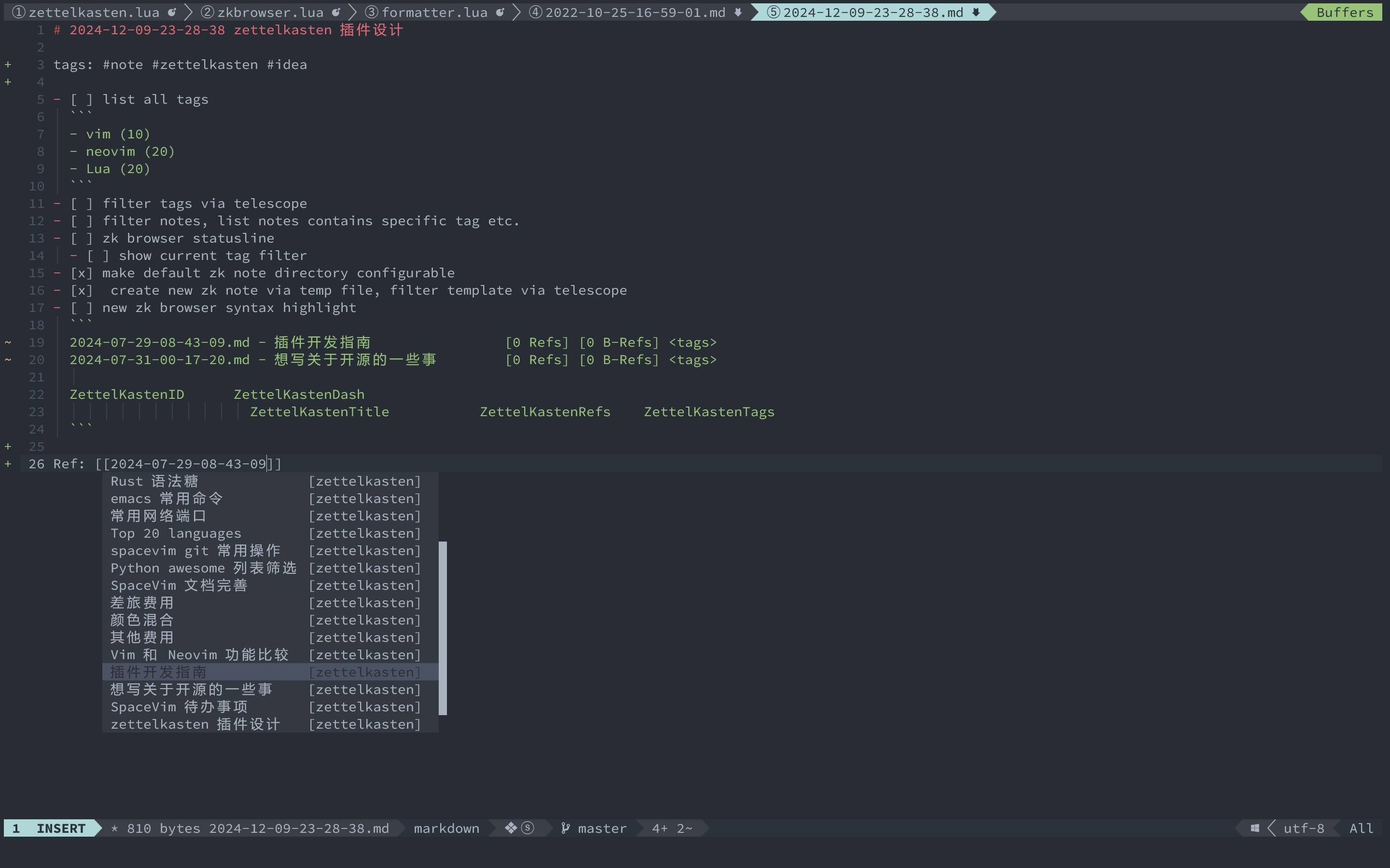 因此自己 Fork 了一个插件,在这个插件的基础上做了一些功能的改进和增加,有兴趣的话欢迎尝试:vim-zettelkasten。